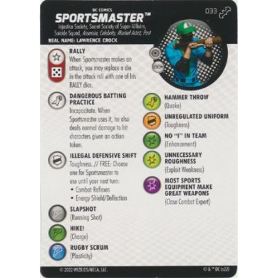 Figura de Heroclix Sportsmaster 033. Incluye carta de personaje en inglés.