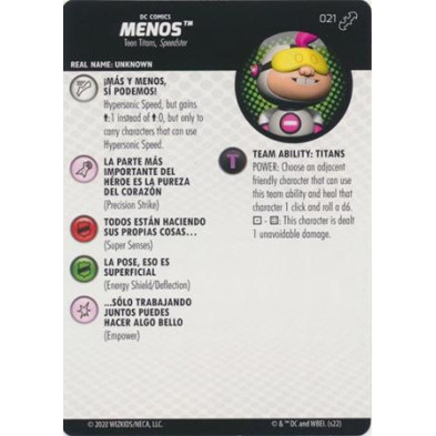 Figura de Heroclix Menos 021. Incluye carta de personaje en inglés.