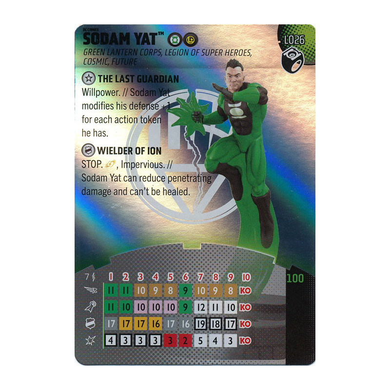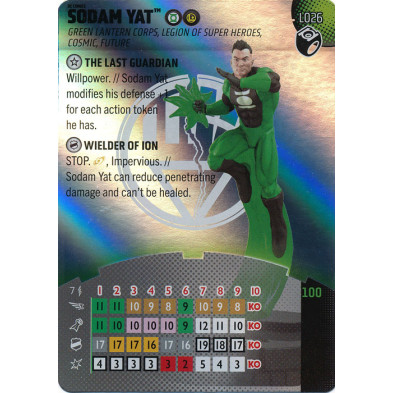 Tarjeta de Heroclix Sodam Yat L026. Carta en inglés.