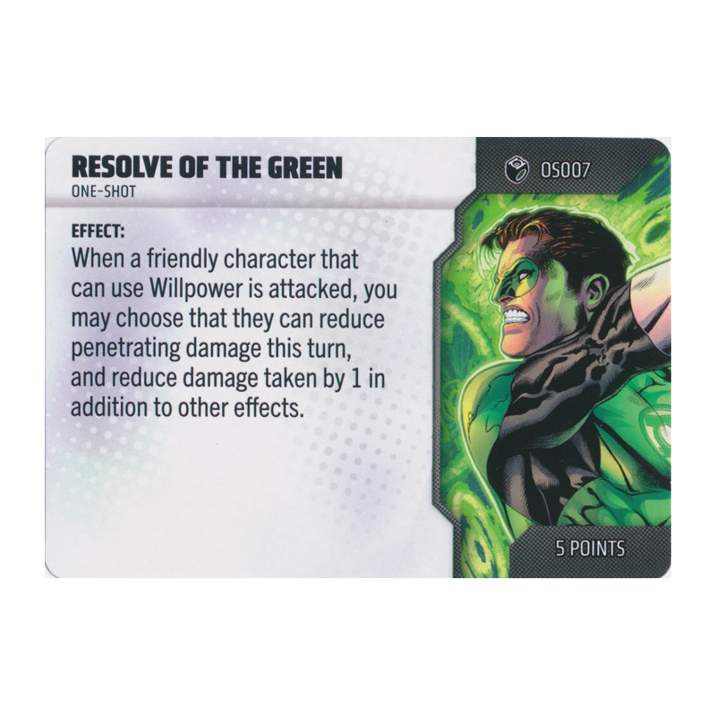 Tarjeta de Heroclix (one shot) Resolve of the Green OS007. Incluye la carta en inglés.