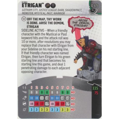 Figura de Heroclix Etrigan 037b. Incluye carta de personaje en inglés.
