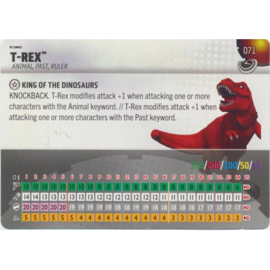 Figura de Heroclix T-Rex 071. Incluye carta de personaje en inglés.