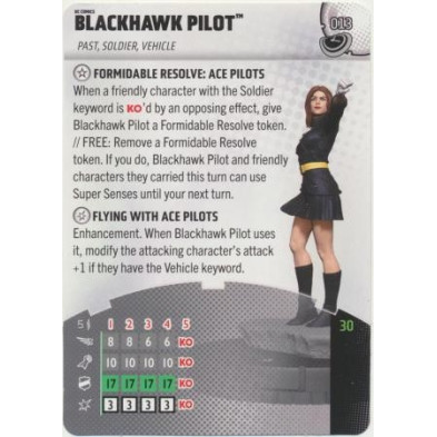 Figura de Heroclix Blackhawk Pilot 013. Incluye carta de personaje en inglés.