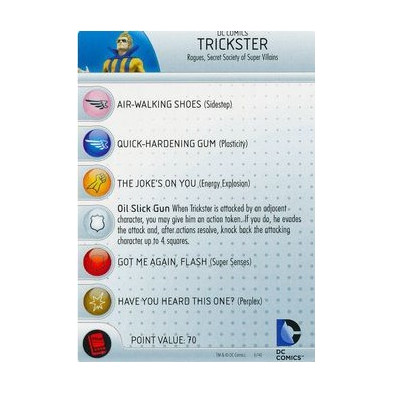 Figura de Heroclix Trickster 022. Incluye carta de personaje. Tamaño aproximado 5 cms de altura.