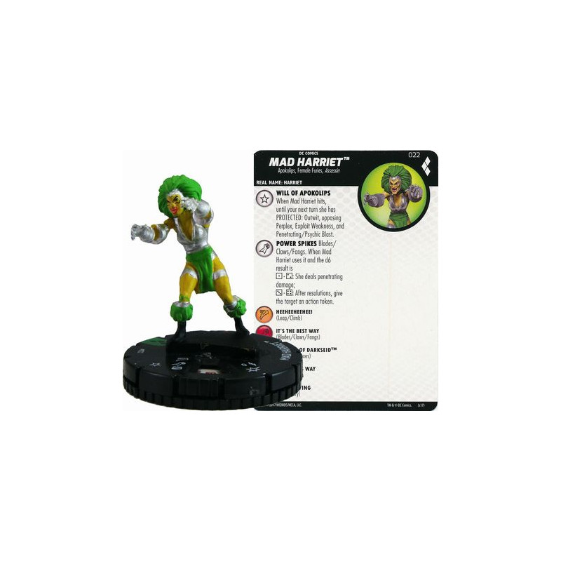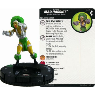 Figura de Heroclix Mad Harriet 022. Incluye carta de personaje en inglés.