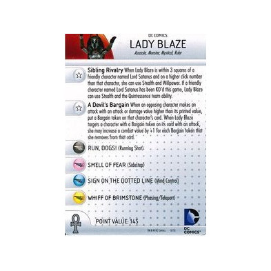 Figura de Heroclix Lady Blaze 045. Incluye carta de personaje en inglés.