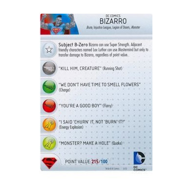 Figura de Heroclix Bizarro 017. Incluye carta de personaje en inglés.