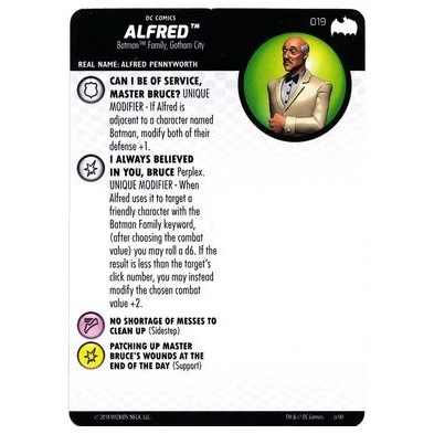 Figura de Heroclix Alfred 019. Incluye carta de personaje en inglés.