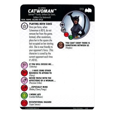 Figura de Heroclix Catwoman 013. Incluye carta de personaje en inglés.