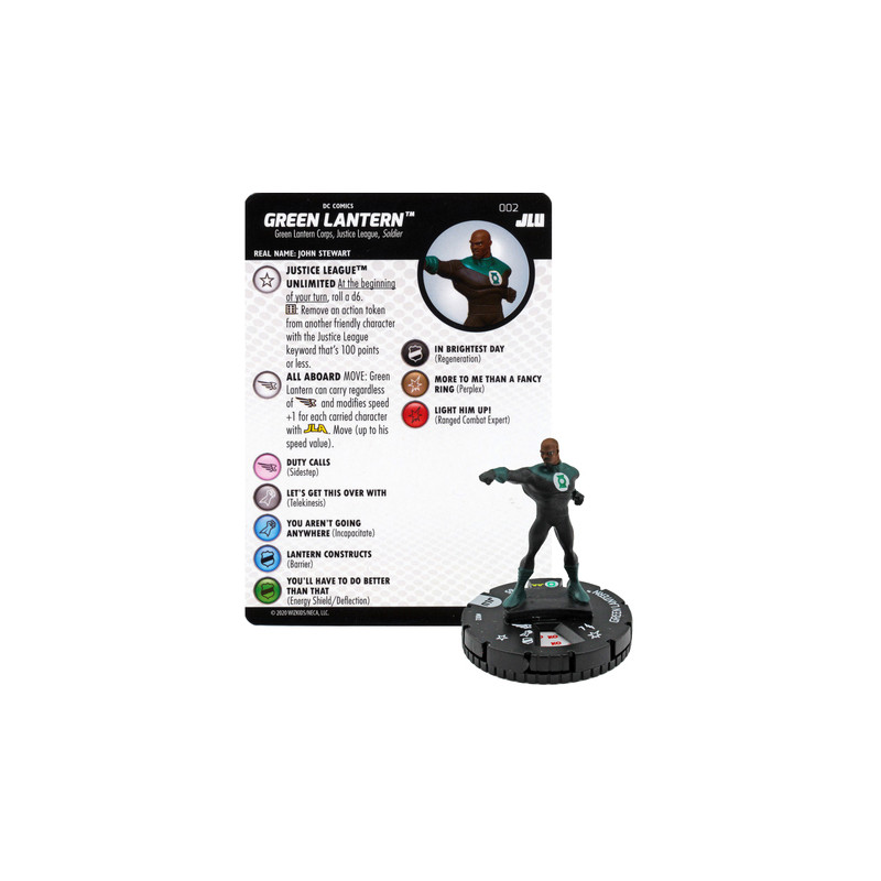 Figura de Heroclix Green Lantern 002. Incluye carta de personaje en inglés.