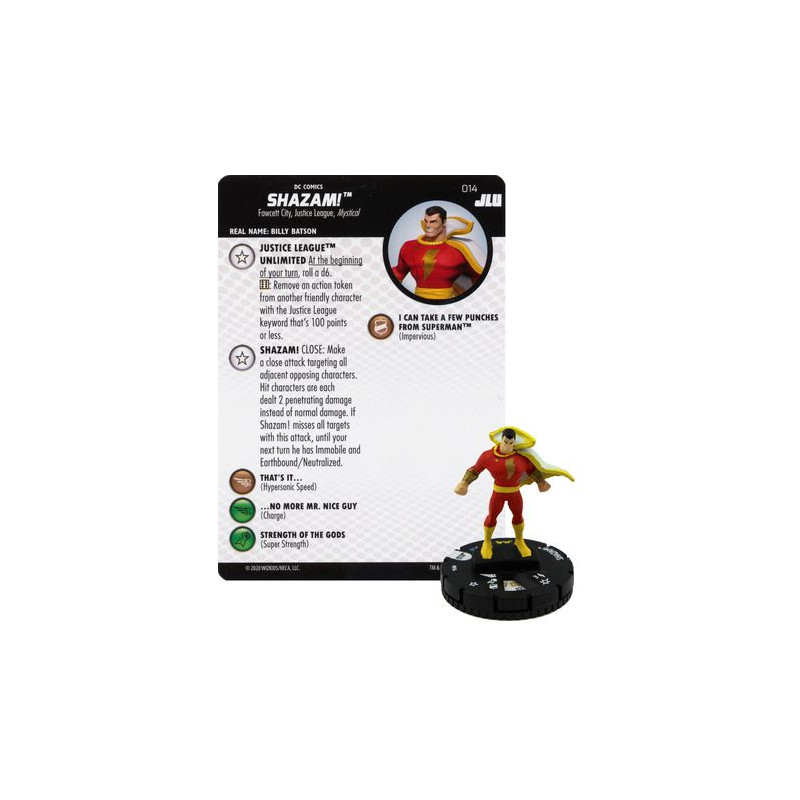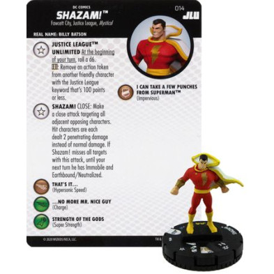 Figura de Heroclix Shazam 014. Incluye carta de personaje. Tamaño aproximado 5 cms de altura.