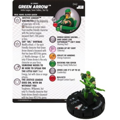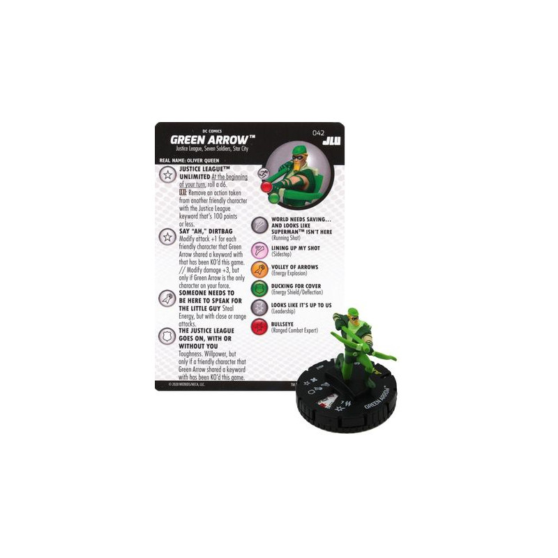Figura de Heroclix Green Arrow 042. Incluye carta de personaje en inglés.
