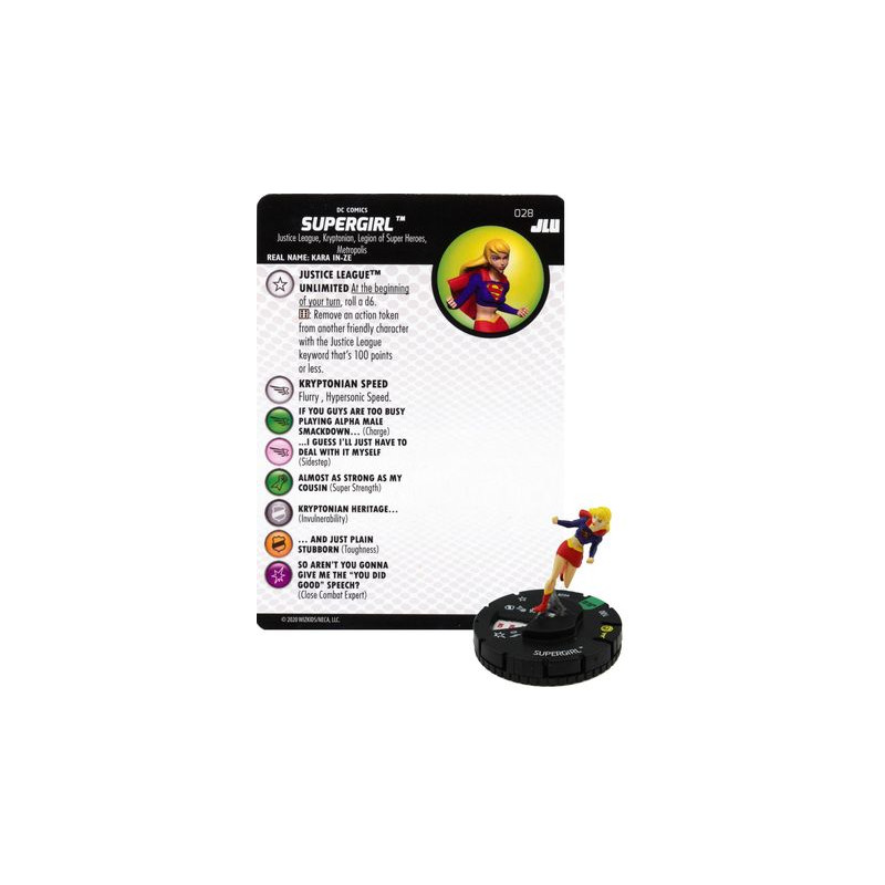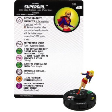 Figura de Heroclix Supergirl 028. Incluye carta de personaje. Tamaño aproximado 5 cms de altura.