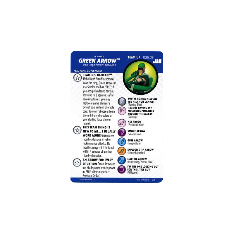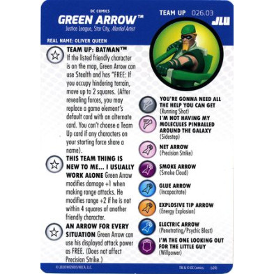 Tarjeta de Heroclix Green Arrow Team Up 026.03 Tarjeta de personaje en inglés.