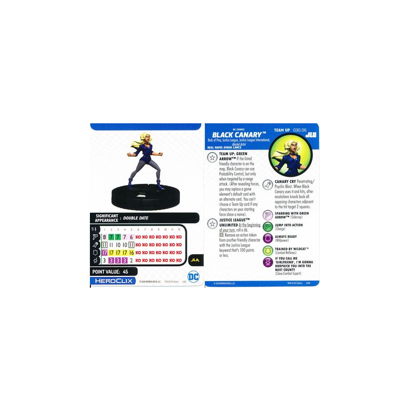 Tarjeta de Heroclix Black Canary Team Up 030.06 Tarjeta de personaje en inglés.