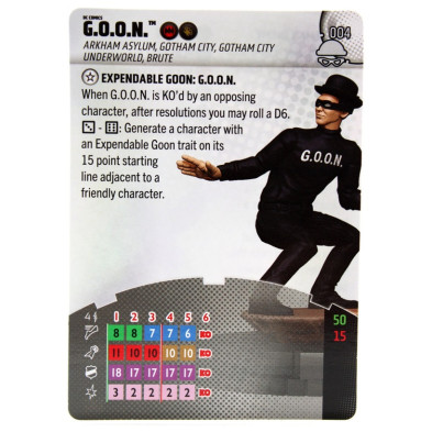 Figura de Heroclix G.O.O.N 004. Incluye la carta de personaje en inglés.