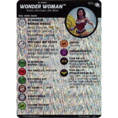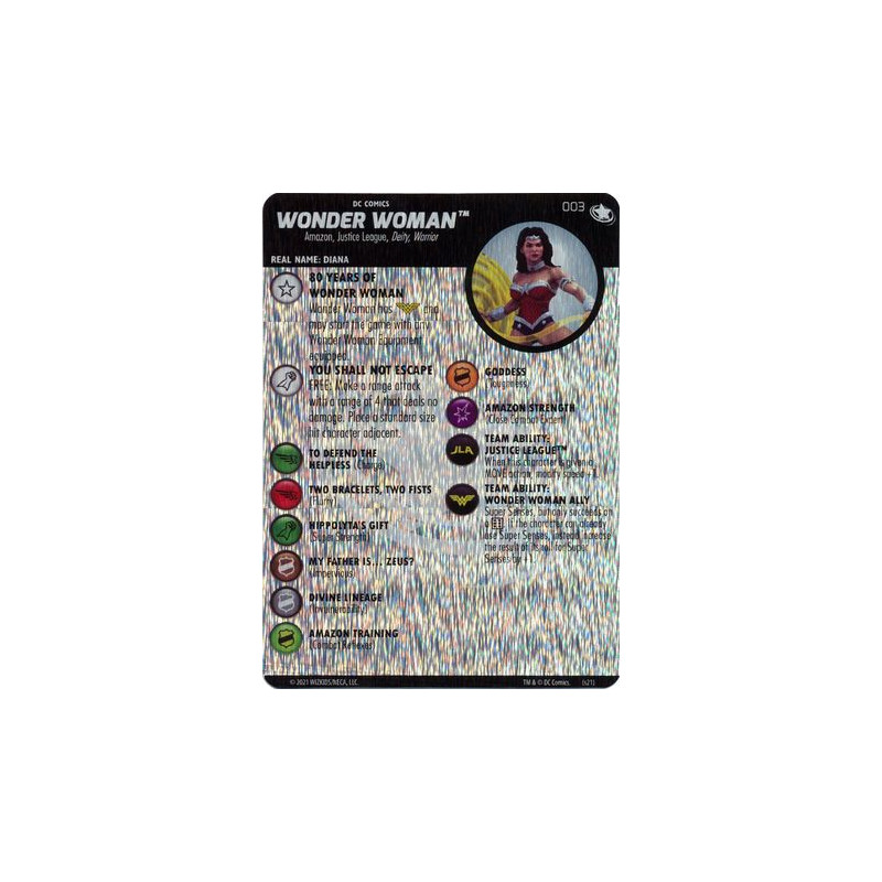 Tarjeta de Heroclix Wonder Woman 003 Tarjeta de personaje en inglés.