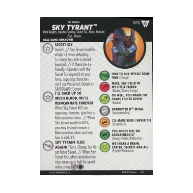Figura de Heroclix Sky Tyrant 065. Incluye carta de personaje en inglés.