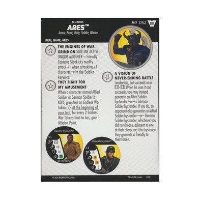 Figura de Heroclix Ares 052. Incluye carta de personaje en inglés.