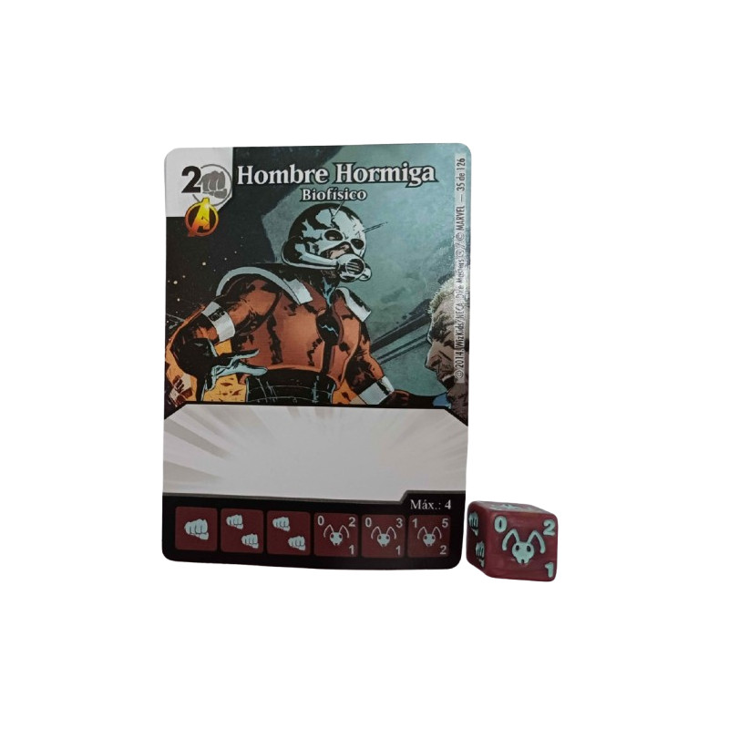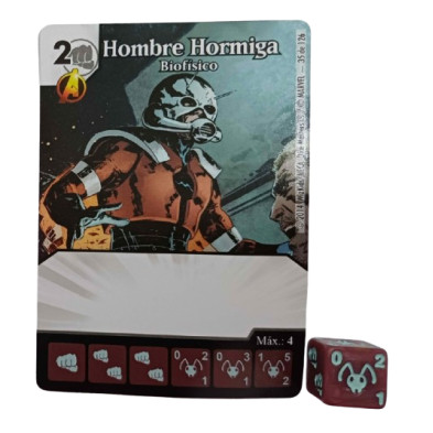 Tarjeta de Dice Masters Hombre Hormiga (Biofísico) 035. Incluye dado exclusivo y carta de personaje en español.