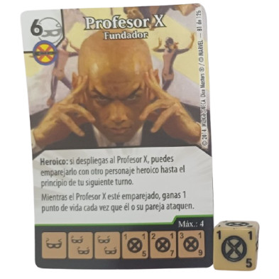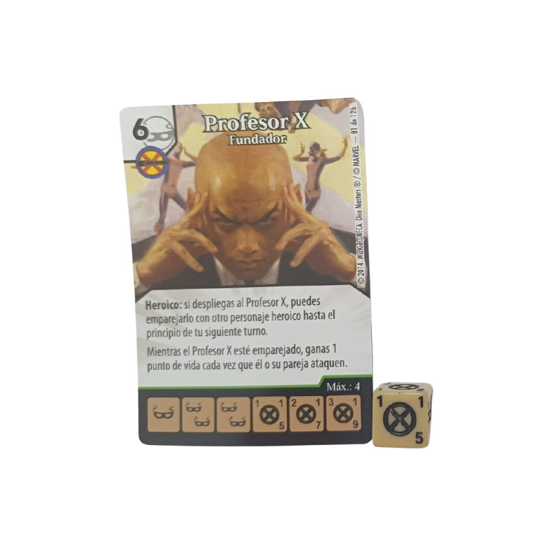 Tarjeta de Dice Masters Profesor X (Fundador) 081. Incluye dado exclusivo y carta de personaje en español.