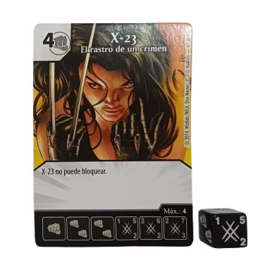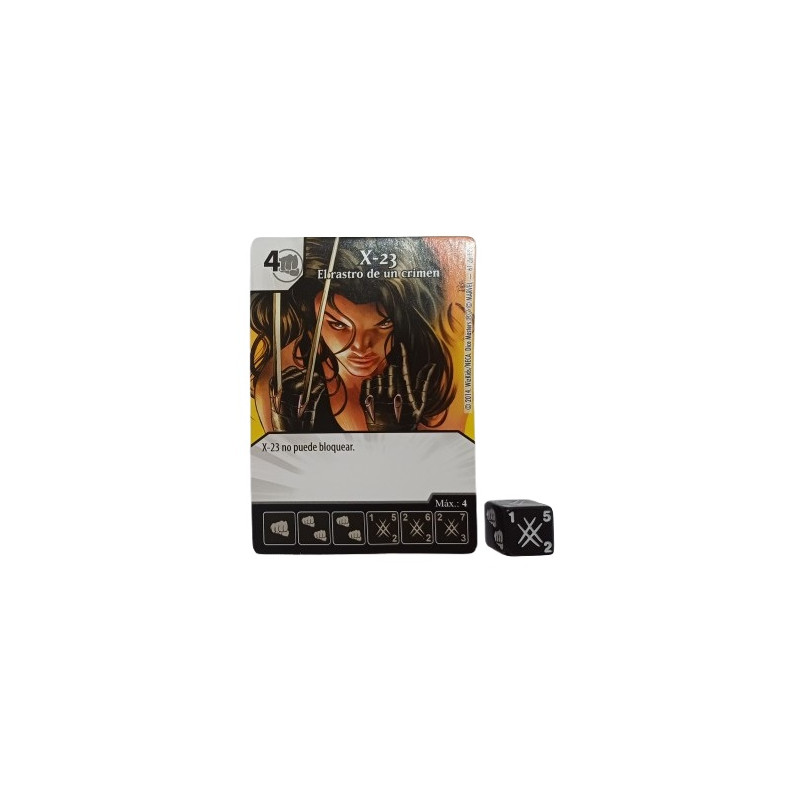 Tarjeta de Dice Masters X-23 (El rastro de un crimen) 061. Incluye dado exclusivo y carta de personaje en español.