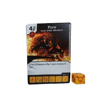 Tarjeta de Dice Masters Pyro (Saint-John Allerdyce) 051. Incluye dado exclusivo y carta de personaje en español.
