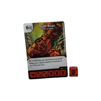 Tarjeta de Dice Masters Hulk Rojo (General Ross) 052. Incluye dado exclusivo y carta de personaje en español.