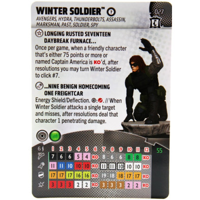 Figura de Heroclix Winter Soldier 027. Incluye la carta de personaje en inglés.