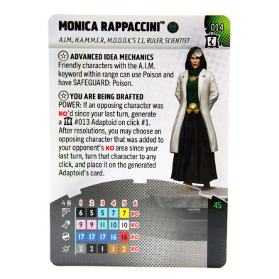 Figura de Heroclix Monica Rappaccini 014. Incluye la carta de personaje en inglés.