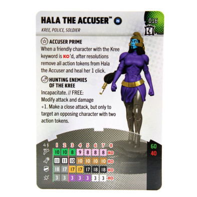 Figura de Heroclix Hala the accuser 016. Incluye la carta de personaje en inglés.