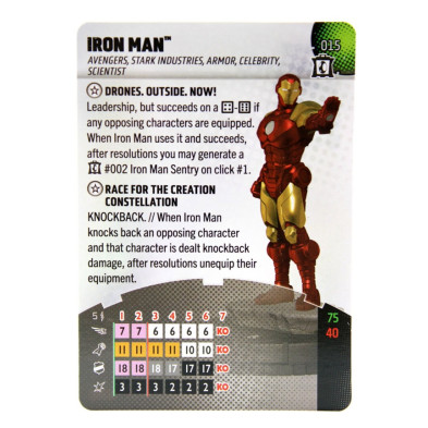Figura de Heroclix Iron Man 015. Incluye la carta de personaje en inglés.