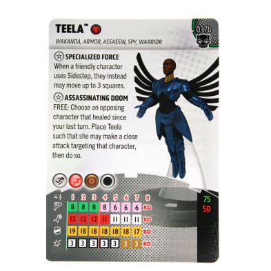Figura de Heroclix Teela 037b. Incluye la carta de personaje en inglés.