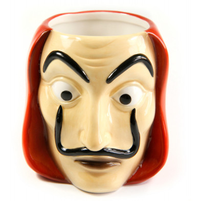Esta taza de cerámica, inspirada en la popular serie La casa de papel, presenta un diseño en 3D basado en la icónica máscara de Dalí. Con capacidad para 350 ml. de tu bebida favorita, su forma única la convierte en un objeto de colección imprescindible para los fans de la serie. Esta espectacular taza presenta un acabado cuidadoso con todo lujo de detalle y viene presentada en una caja protectora. Con licencia oficial, esta taza hará las delicias de los miles de fans de La casa de papel.