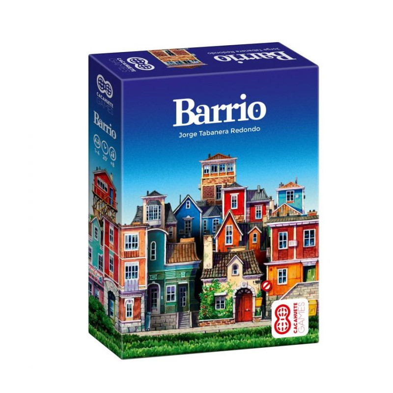 Barrio es un dinámico juego de cartas familiar, diseñado por Jorge Tabanera Redondo y publicado por Cacahuete Games. Ideal para 1–4 jugadores a partir de 8 años, con partidas ágiles de unos 20 minutos. Su propuesta es accesible, táctica y perfecta tanto para jugar en familia como entre jugones que buscan un filler con decisiones interesantes.