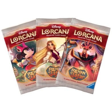 A diferencia de los mazos de inicio, estos paquetes de refuerzo contienen 12 cartas aleatorias del set Reign of Jafar de Disney Lorcana TCG. Utiliza los paquetes de refuerzo para construir y personalizar tu mazo con habilidades y personajes adicionales a los que se encuentran en los mazos de inicio.