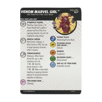 Figura de Heroclix Venom Marvel Girl 046. Incluye la carta de personaje en inglés.