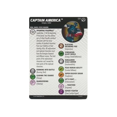Figura de Heroclix Captain America 051. Incluye la carta de personaje en inglés.