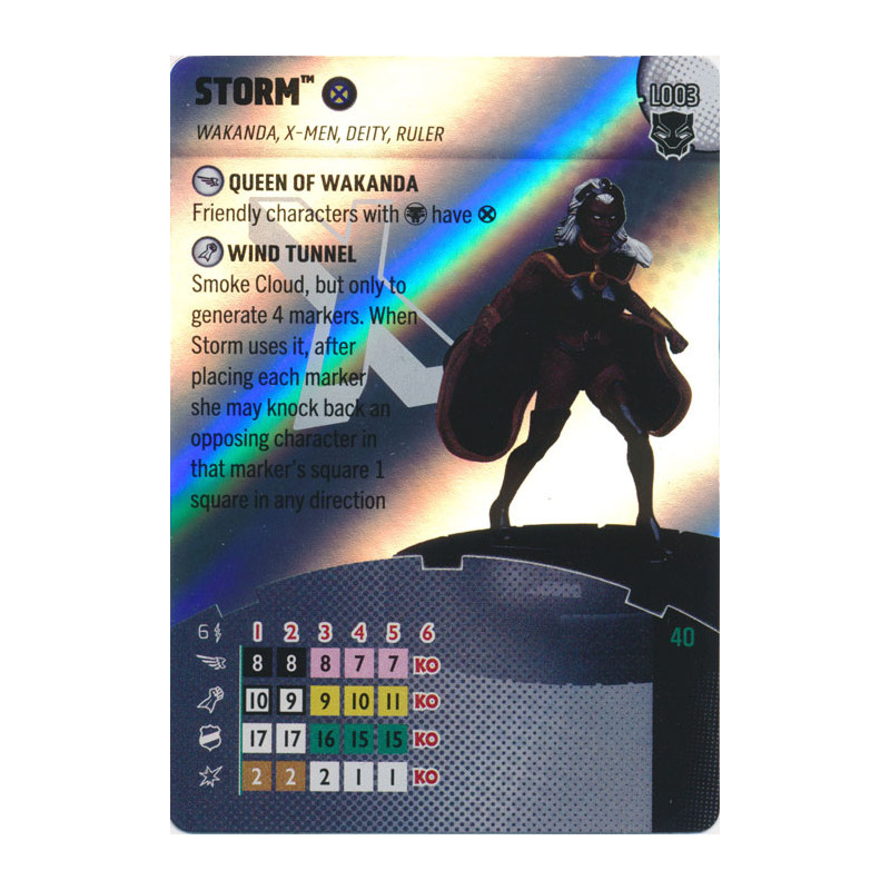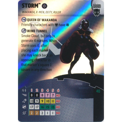 Tarjeta de Heroclix Storm L003. Tarjeta de personaje en inglés.