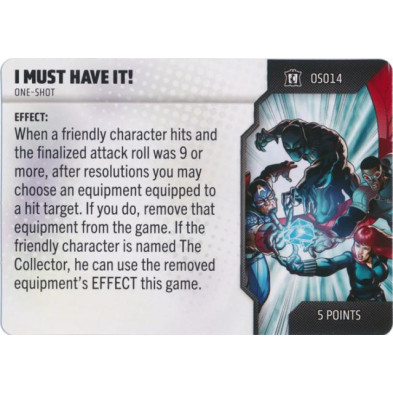 Tarjeta de Heroclix (one shot) I must have it! OS014. Incluye la carta en inglés.