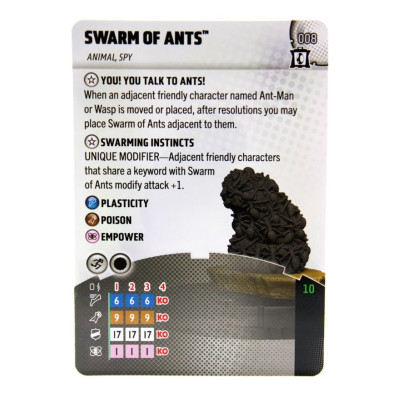 Figura de Heroclix Swarm of ants 008. Incluye la carta de personaje en inglés.