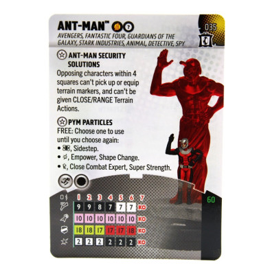 Figura de Heroclix Ant-Man 035. Incluye la carta de personaje en inglés.