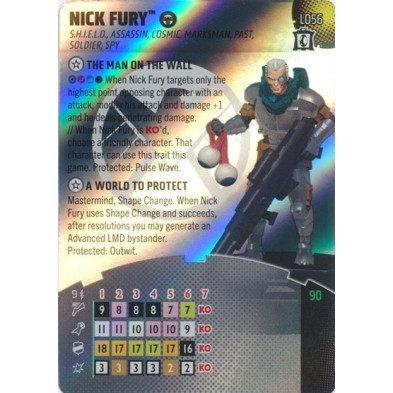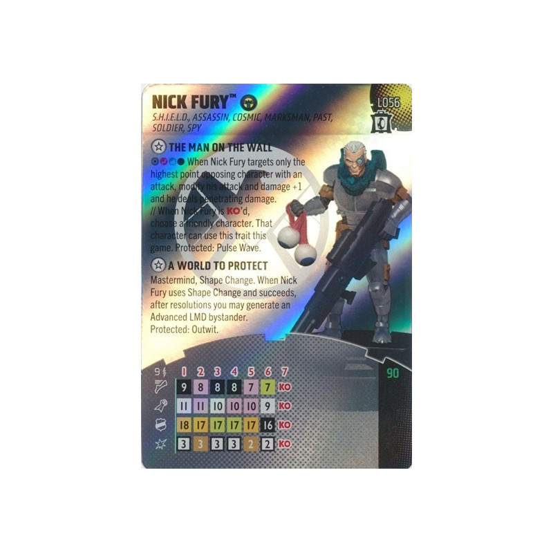 Tarjeta de Heroclix Nick Fury L056. Incluye la carta en inglés.