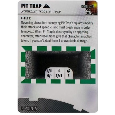 Objeto de Heroclix Pit Trap MV58-t012. Incluye la carta de objeto en inglés.