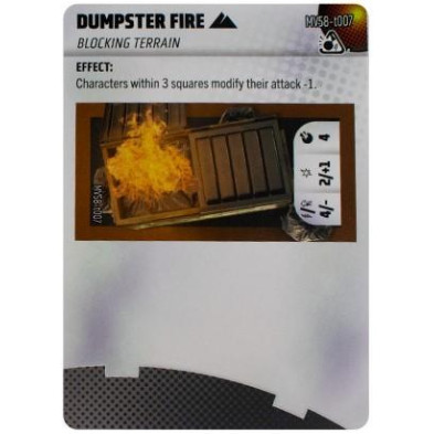 Objeto de Heroclix Dumpster Fire MV58-t007. Incluye la carta de objeto en inglés.