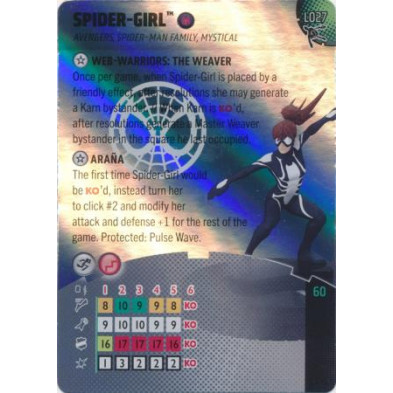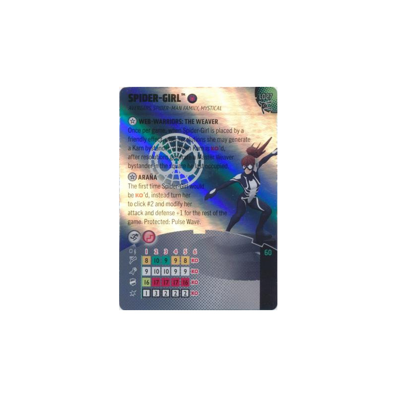 Tarjeta de Heroclix Spider-Girl Legacy L027 Tarjeta de personaje en inglés.