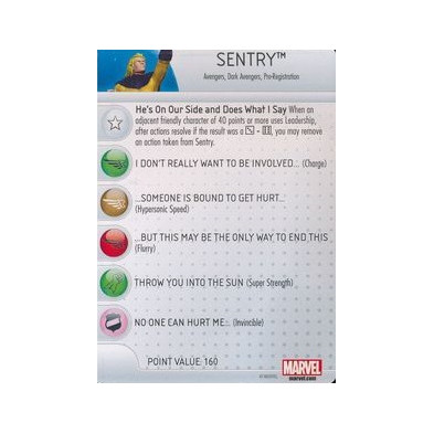 Figura de Heroclix Sentry 106. Incluye la carta de personaje en inglés.