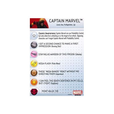 Figura de Heroclix Captain Marvel 104. Incluye la carta de personaje en inglés.