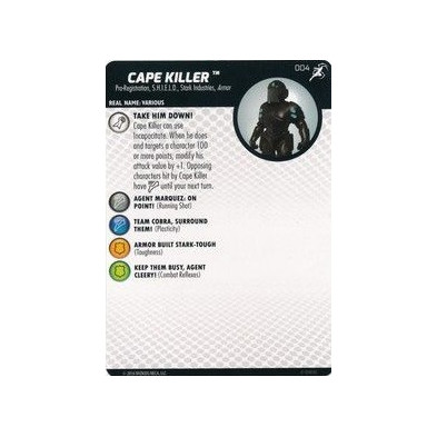 Figura de Heroclix Cape Killer 004. Incluye la carta de personaje en inglés.