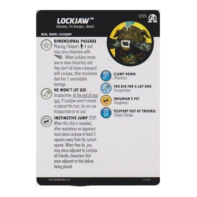 Figura de Heroclix Lockjaw 059. Incluye la carta de personaje en inglés.